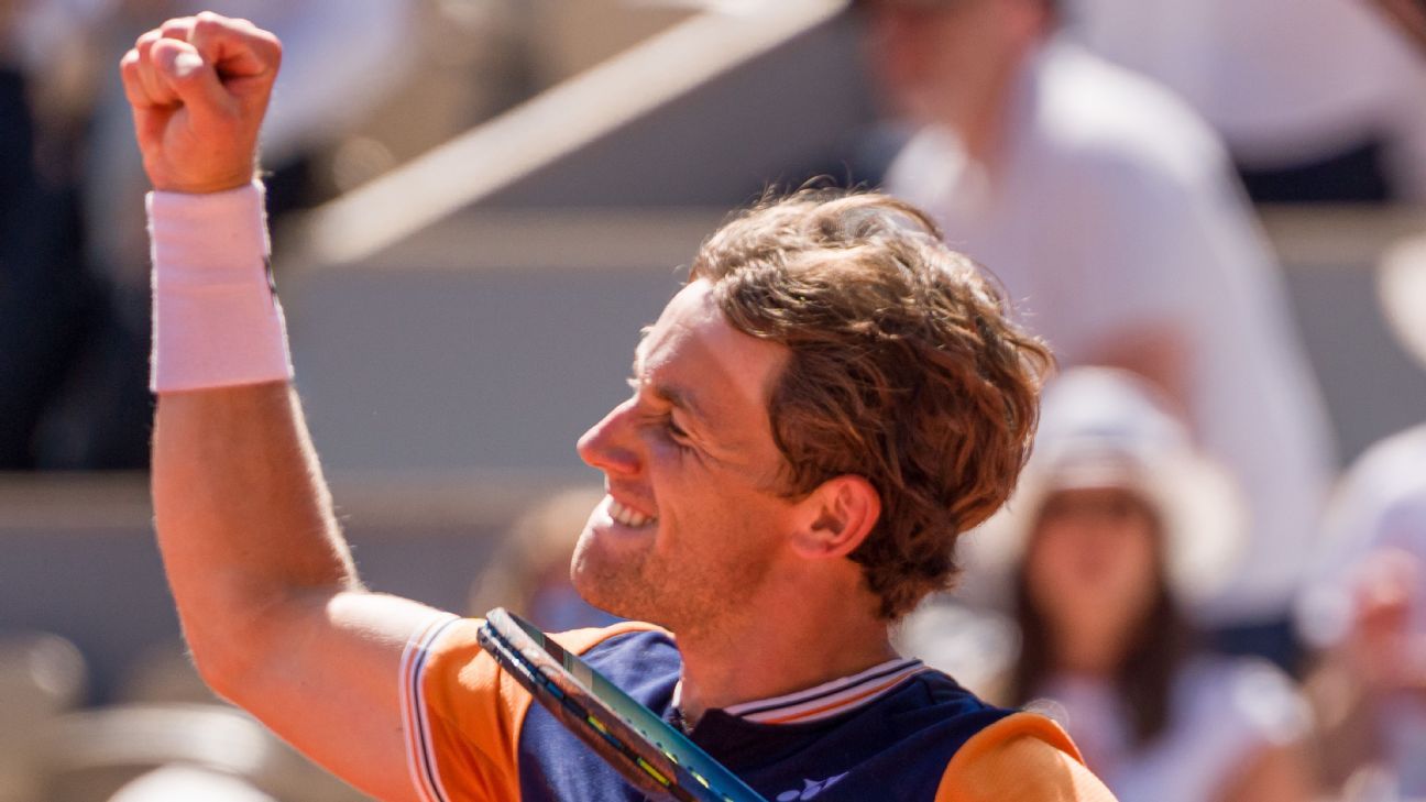 El subcampeón del año pasado, Casper Ruud, alcanzó los cuartos de final del Abierto de Francia el lunes al vencer al chileno Nicolás Jarry en una larga victoria por 7-6 (3), 7-5, 7-5.