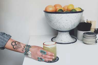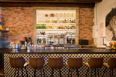 Uno de los bares de cócteles básicos en Santa Fe es un pequeño rincón llamado mezcal-spiked la reina. Este caprichoso abrevadero está escondido en un elegante motel estilo lechera, Corte del rey, que parece proporcionar un ambiente elegante de Wes Anderson en el desierto, con sus toques de color y garabatos de humo de cactus. Levanta una silla y deja que el camarero vestido de azul te vista con algo con aloe vera. El menú gira estrecho, pero los alimentos básicos incluyen un magistral Water Ranch con Tequila, Topo Chico y Lime. O elija La Ultima Palabra, hecha con Genepy, licor de marrasquino, mezcal y jugo de limón, que de alguna manera lo convierte en deliciosos sabores a pino, ahumados y afrutados.