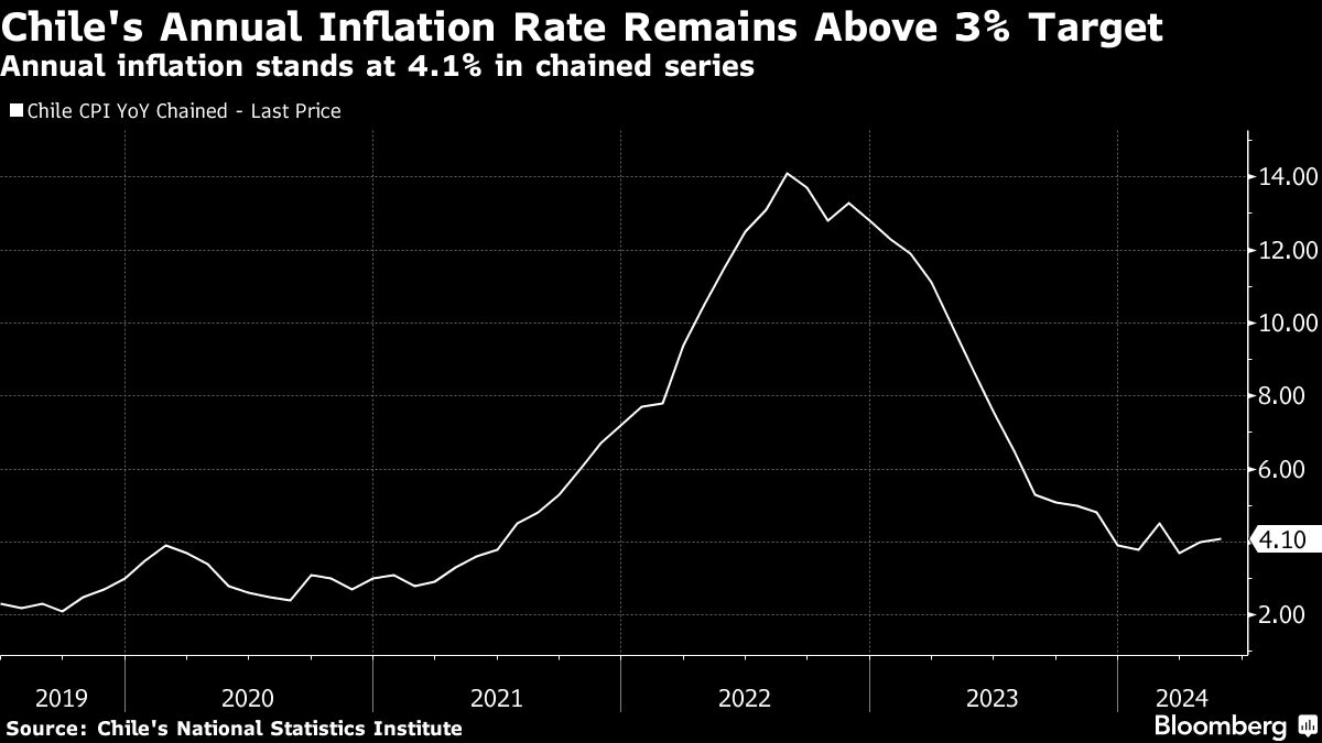 El banco central de Chile prevé una inflación anual del 3,8% en diciembre y del 3% para fines de 2025, según estimaciones publicadas en abril. Los comerciantes encuestados por la Autoridad Monetaria vieron un crecimiento de los precios al consumidor del 3% en 12 meses.