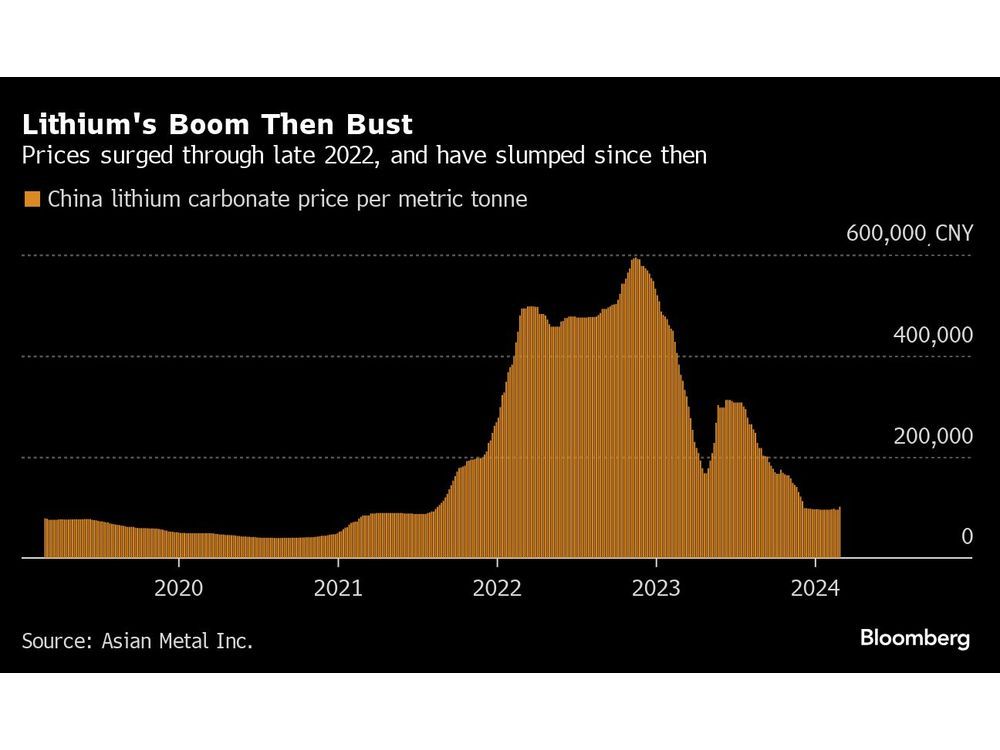 El auge de los vehículos eléctricos ha provocado una ola de volatilidad en el anteriormente pequeño mercado del litio. Los precios subieron hasta finales de 2022 y desde entonces han caído más del 80%. También ha habido una caída en los precios del níquel y de otros metales importantes, con una ola de nueva oferta que llega al mercado. Para los productores de materias primas como Chile, esto dificulta la inversión en nuevas minas.